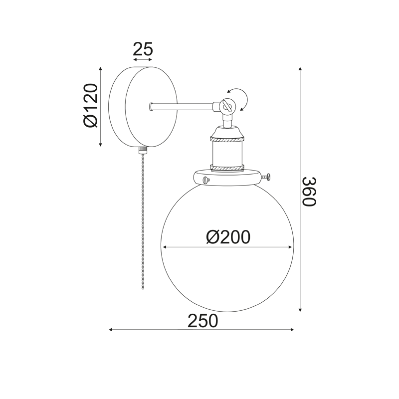 ΕΠΙΤΟΙΧΟ Φ/Σ 1ΧΕ27 ΜΑΥΡΟ ΜΕΤΑΛΛΟ+ΓΥΑΛΙ Φ20ΧΗ38CM TARO