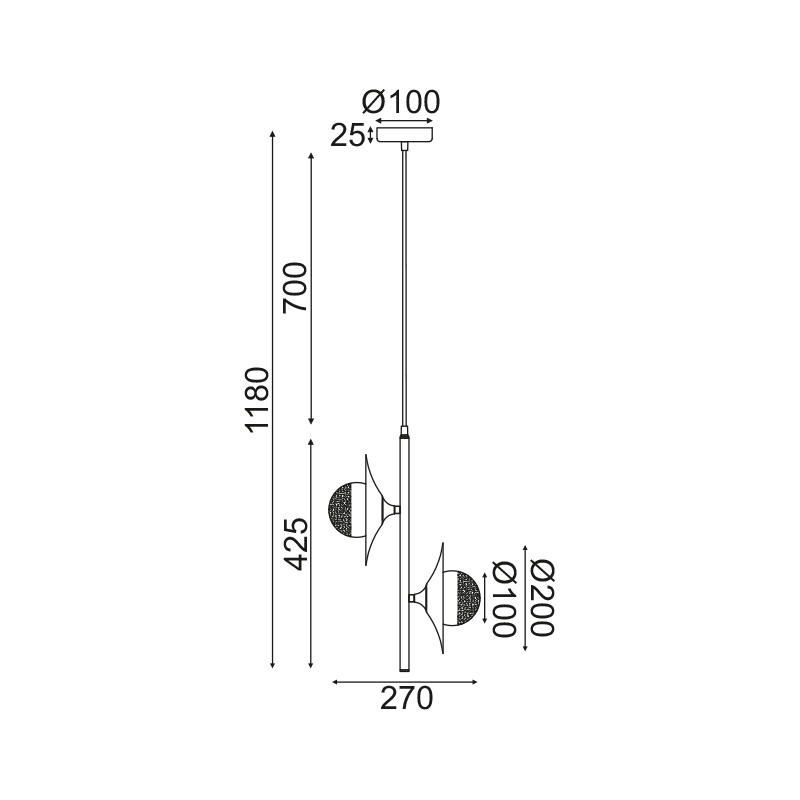 ^ΚΡΕΜΑΣΤΟ Φ/Σ 2ΧG9 ΧΑΛΚΙΝΟ/ΜΑΥΡΟ ΜΕΤ/ΚΟ + ΓΥΑΛΙ 27Χ20ΧΗ118CM HYDRA