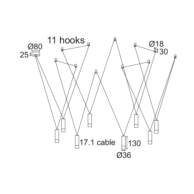 ΚΡΕΜΑΣΤΟ Φ/Σ 8ΧG9 ΜΑΥΡΟ ΑΛΟΥΜΙΝΙΟ 8x D3,6XH13CM ΚΑΛΩΔΙΟ 17,1M 11HOOKS TERES