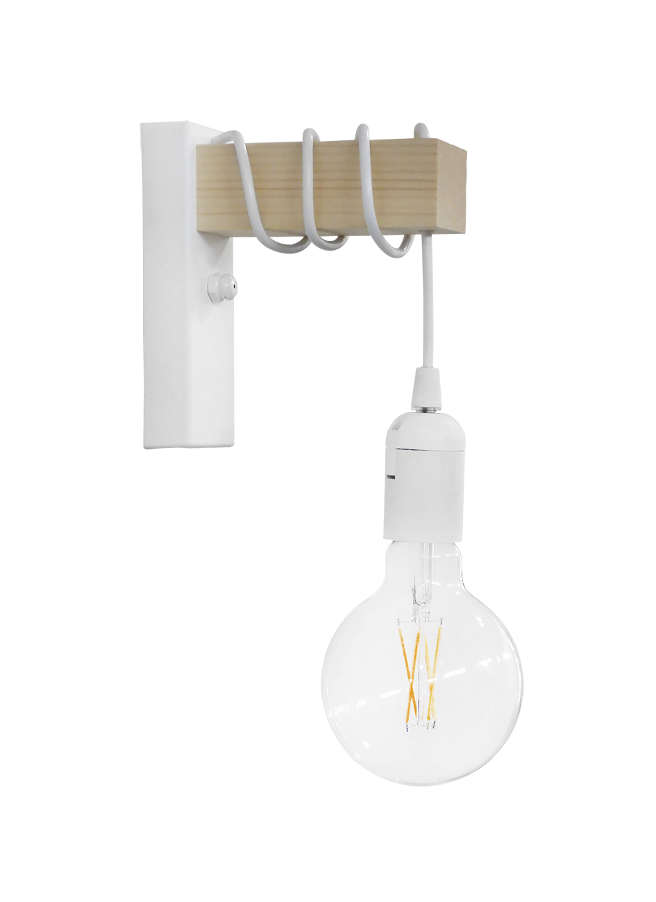 Φωτιστικό τοίχου με ξύλινο μπράτσο Ε/27ΑΡ SQUARE WHITE ΑΠΛΙΚΑ ΞΥΛΟ