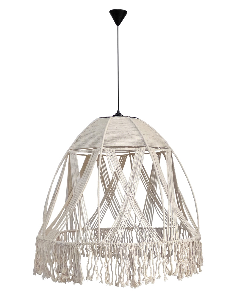 Κρεμαστό μονόφωτο,φωτιστικό με σχοινί, μακραμέ λευκό BRAZIL-B- Φ80 WHITE 1L