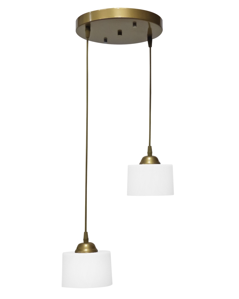 Οροφής φωτιστικό 2φωτο με καπελάκια λευκά σε μοντέρνα γραμμή και μεταλλικό σκελετό χρυσό ματ ,DRUM/14 PENDEL 2/L WHITE-GOLD