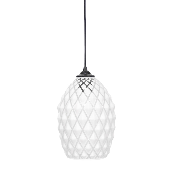 Φωτιστικό κρεμαστό με καλώδιο μαύρο και γυαλί λευκό σε σχήμα ανανά