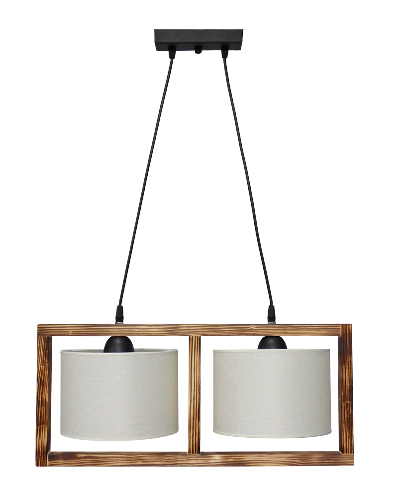 Κρεμαστό φωτιστικό μοντέρνο με καπέλα υφασμάτινα (αμπαζούρ) HKF-01 2L WOOD ΛΕΥΚΟ/ΚΡΕΜ-ΚΑΜΕΝΟ ΚΡΕΜΑΣΤΟ Ε/27 ΞΥΛΟ-ΑΜΠΑΖΟΥΡ