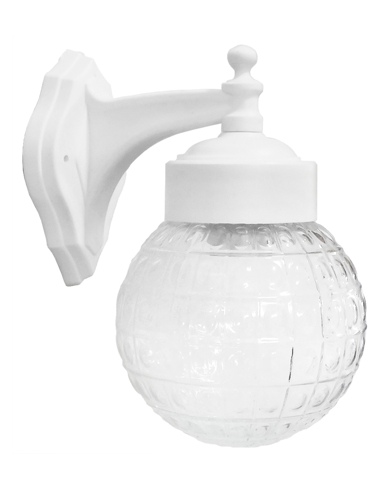Απλίκα τοίχου πλαστική λευκή με γυαλί μπάλα βιδωτή,σε διάφανο LP-110AN WHITE-TRANS