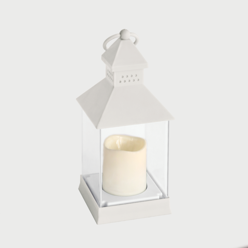 “MAYON”, ΛΕΥΚΟ ΠΛΑΣΤΙΚ ΦΑΝΑΡΙ-ΠΛΑΣΤΙΚ ΚΕΡΙ, 1 LED ΛΑΜΠ ΜΠΑΤ(3xAAA), ΘΕΡΜ ΛΕΥΚ, IP44, 10.5×10.5x24c