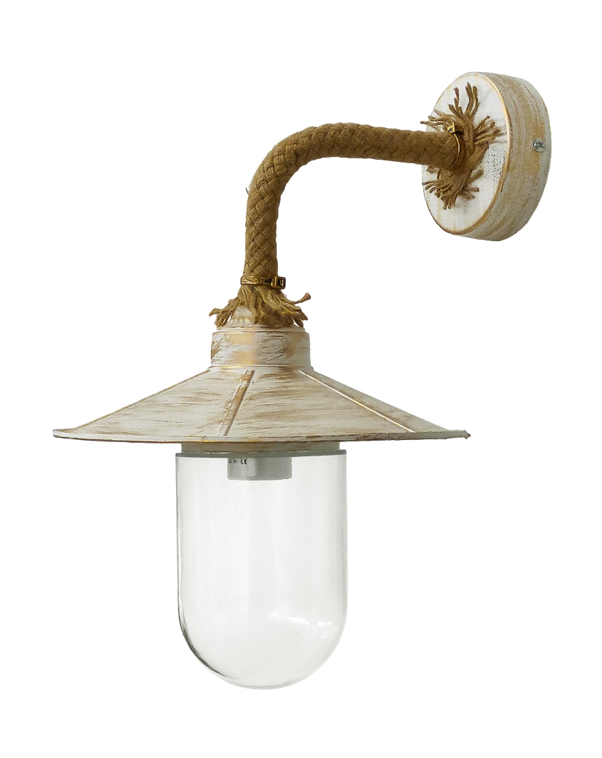 Απλίκα τοίχου με μεταλλική βάση,φυσικό σχοινί ,καπέλο πλαστικό και γυαλί βιδωτό,σε χρώμα λευκό-μπρονζέ ,SLP-651AP ROPE UT-WH-BR 90μ.